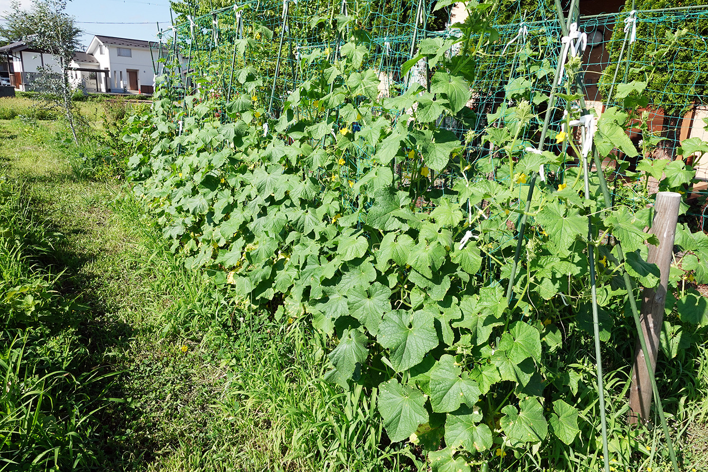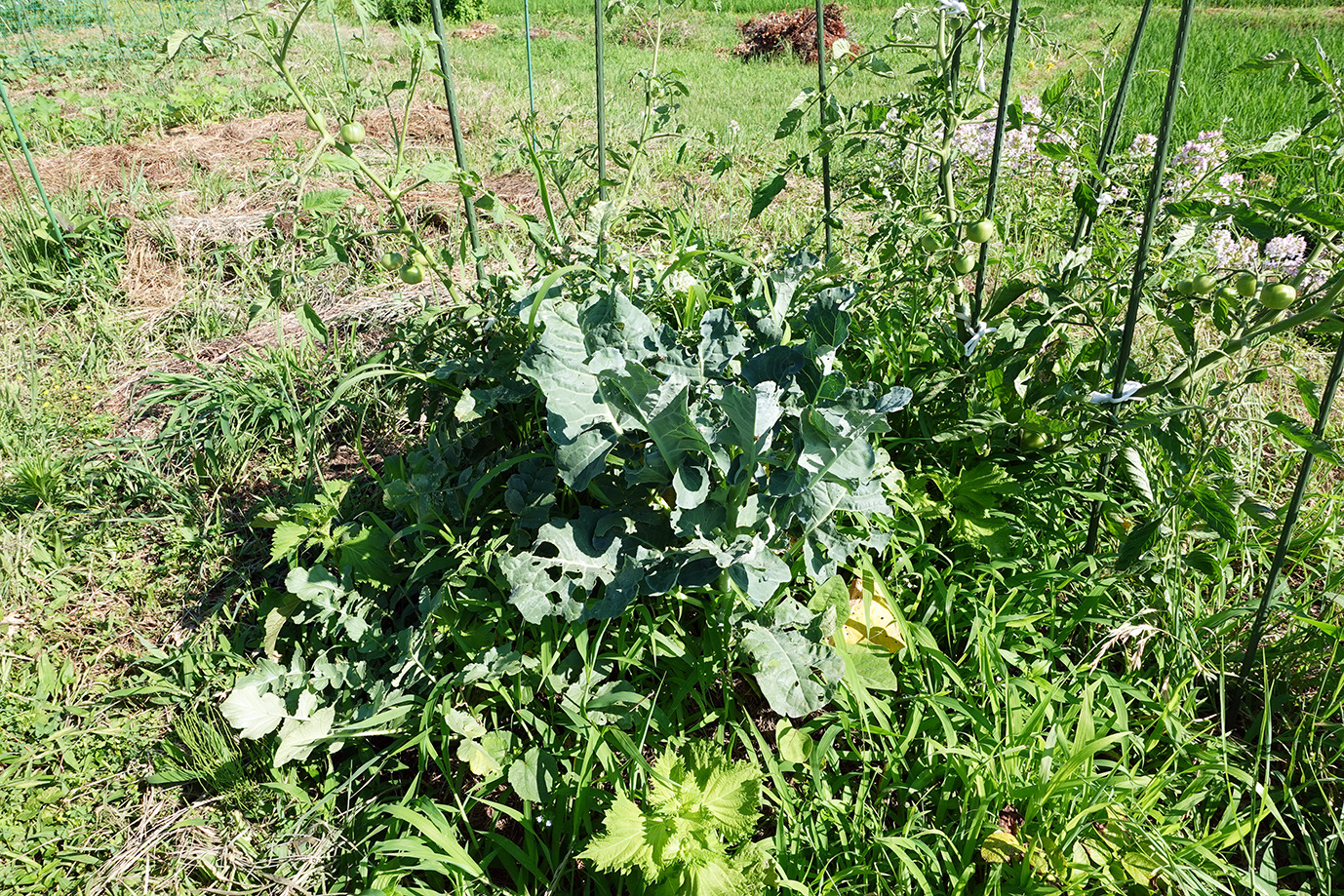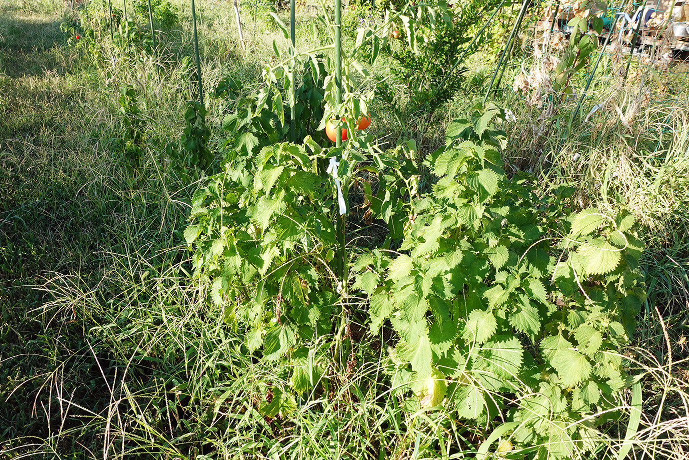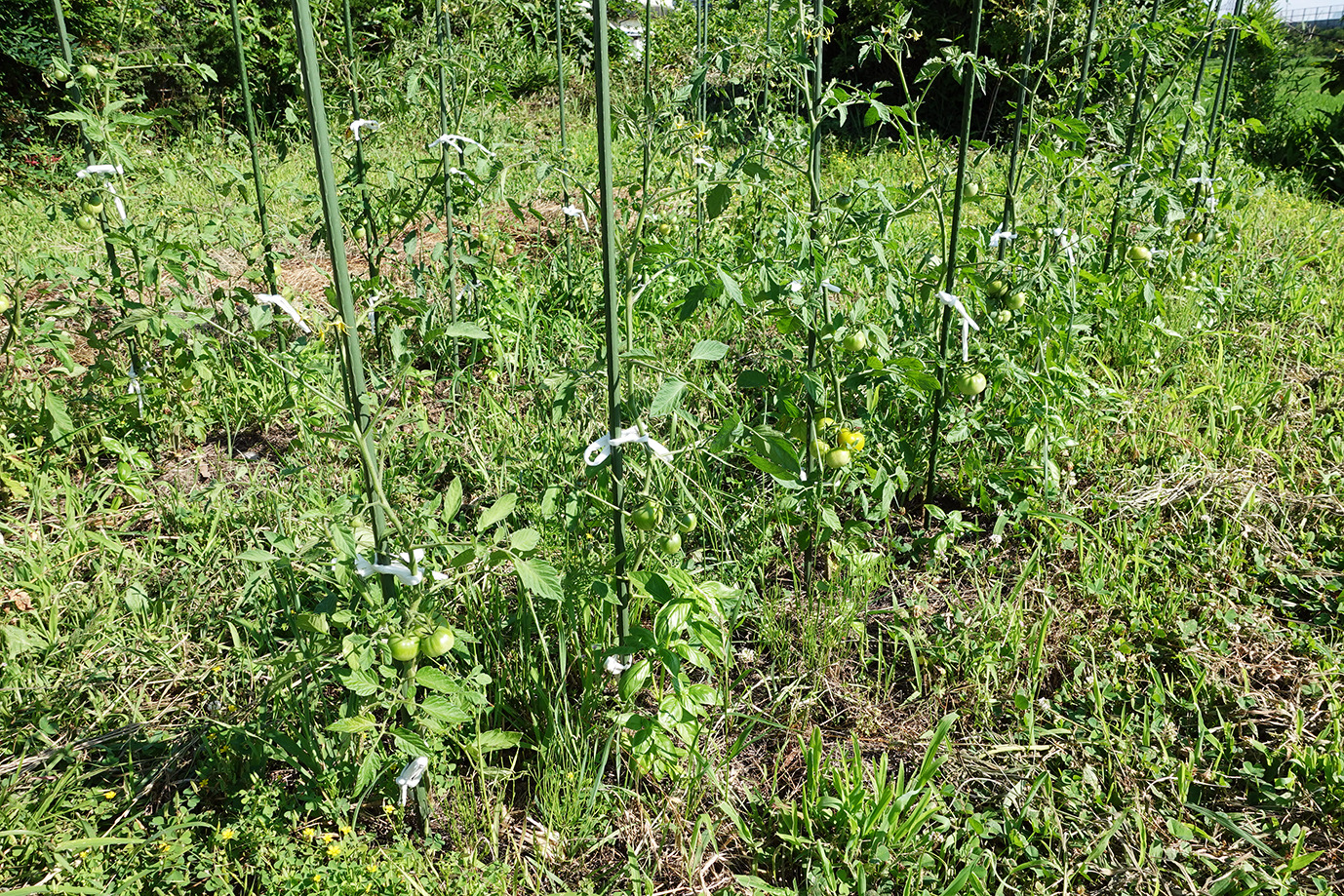 9月に入っても相変わらず35度近い日が続く。強い日射と小雨で草地でさえかなり乾燥だ。灌水をこまめにしてピーマンやトマトは頑張っている。
