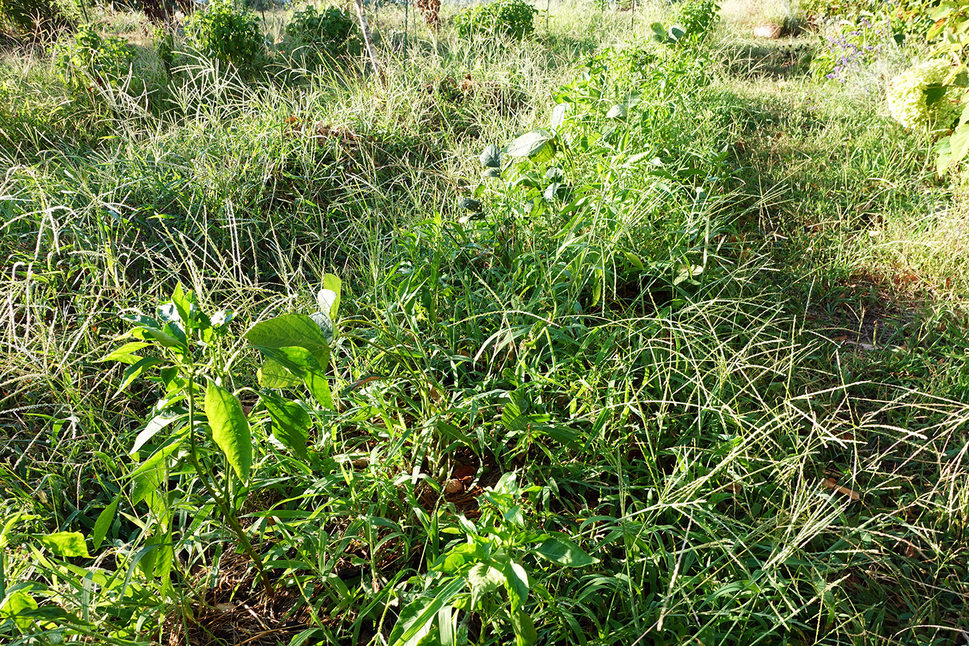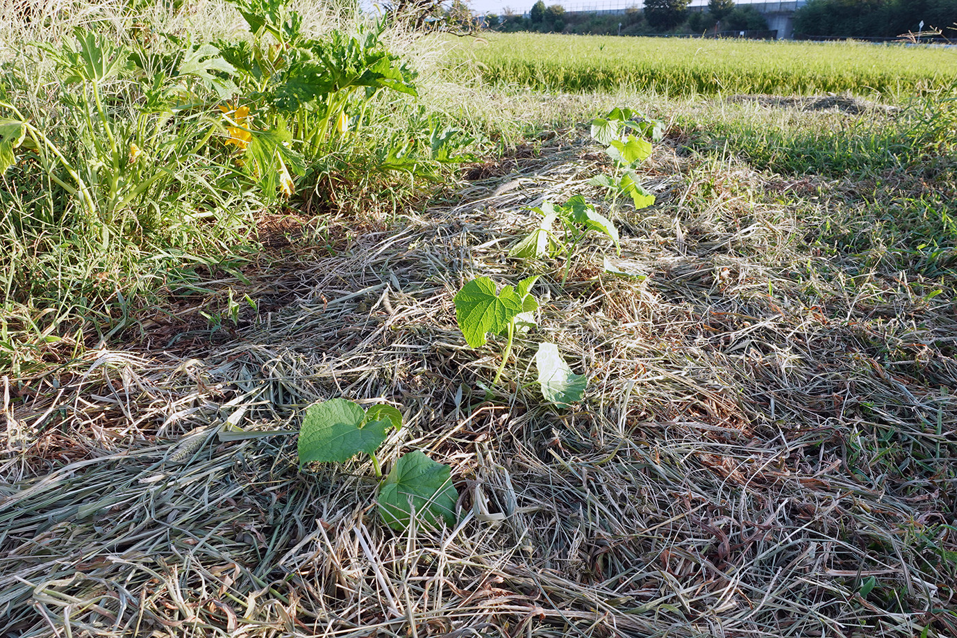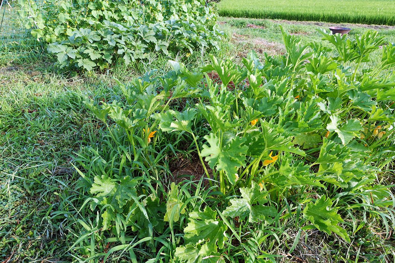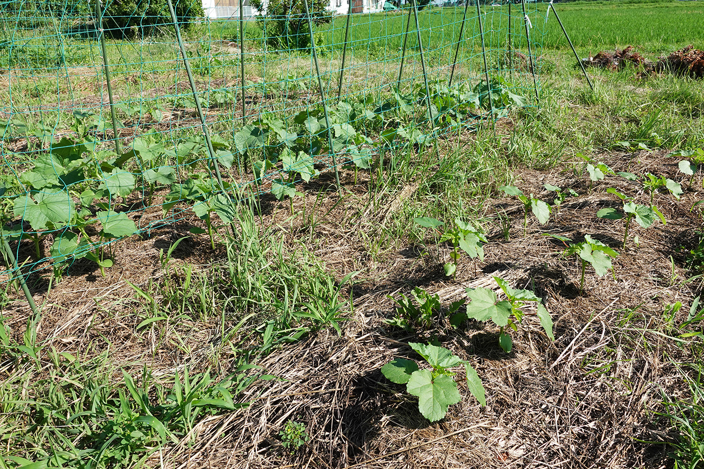 9月に入っても相変わらず35度近い日が続く。強い日射と小雨で草地でさえかなり乾燥だ。灌水をこまめにしてピーマンやトマトは頑張っている。