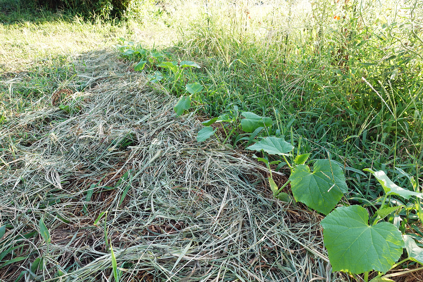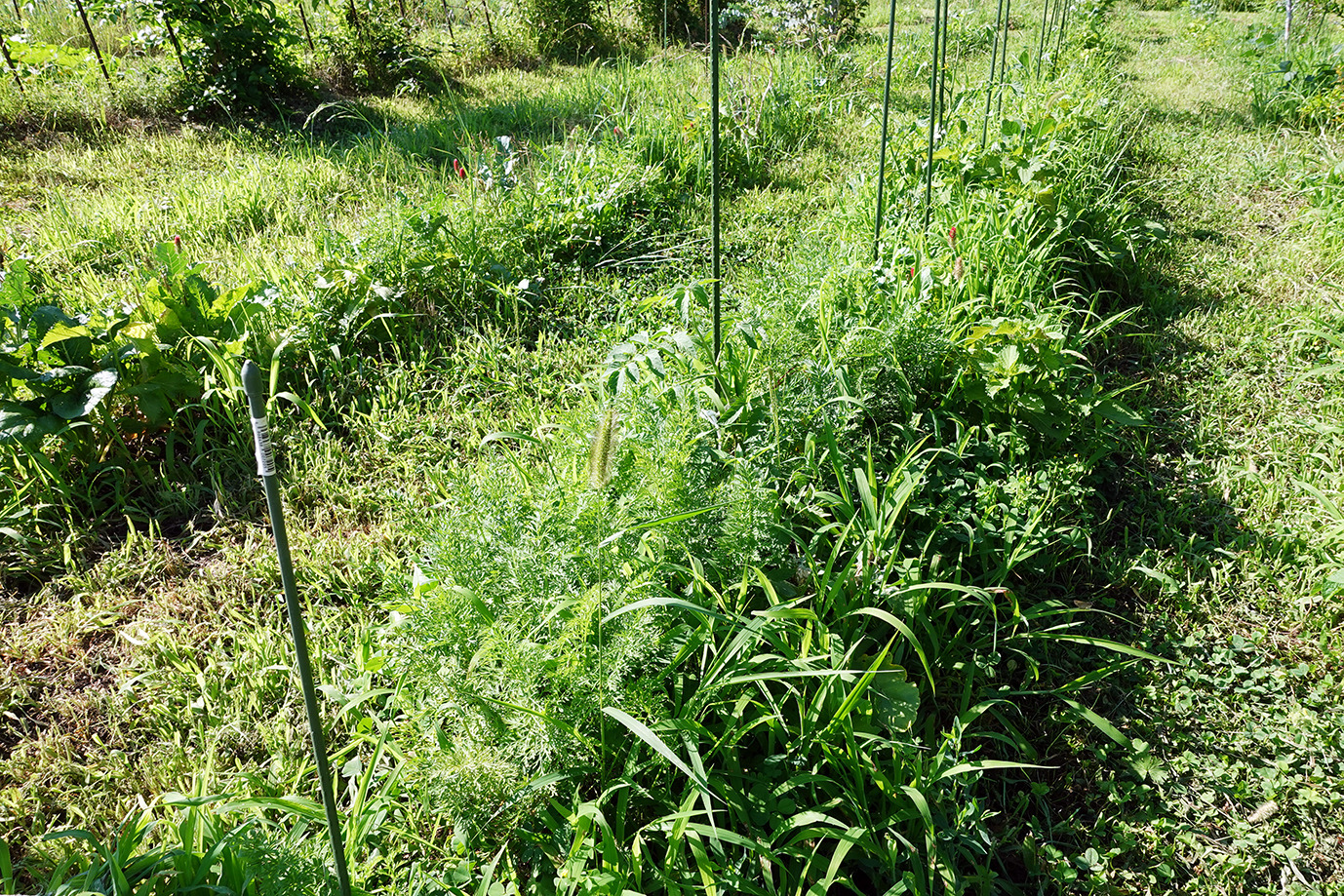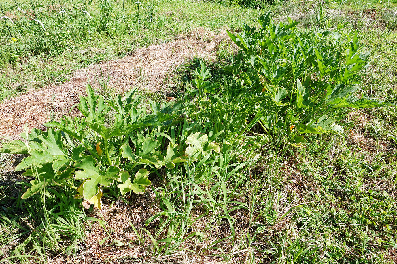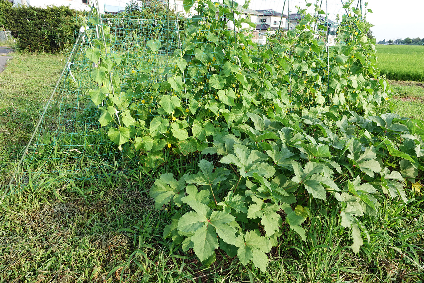 9月に入っても相変わらず35度近い日が続く。強い日射と小雨で草地でさえかなり乾燥だ。灌水をこまめにしてピーマンやトマトは頑張っている。